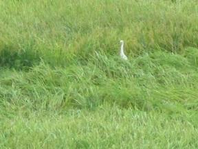 6年教室前の廊下からふと外を見ると白い鳥がいました。白鷺ですかね?