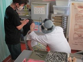 一人一人丁寧に診ていただきました。写真は1年生の様子です。終わってから「ありがとうございました」としっかり言えていました。