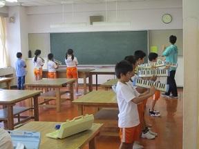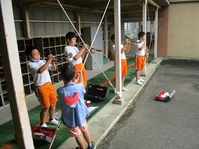 トランペットの練習をしていました。久しぶりの練習でどうか聞いてみると、「肺活量が少なくなった感じがします」という返答。大丈夫あっという間に元に戻ります。低学年児童もあこがれのまなざしで見ていました。将来はトランペットかな?