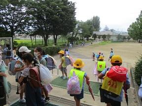 理科室から出火のため、校庭へ避難します。