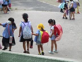 1年生の手を引いて帰る姿に少し心がホンワカしました。