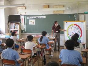 3校時目は栄養教諭の山口亜矢子先生においでいただき、5年生の食育指導を行いました。