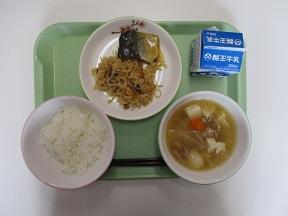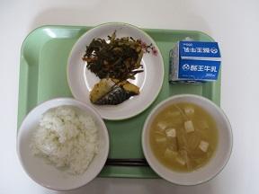 今日の食育の学習で考えると、主食はご飯 主菜はさばの味噌煮 副菜が切干大根の煮物、汁物が豚汁ということになりますね。