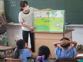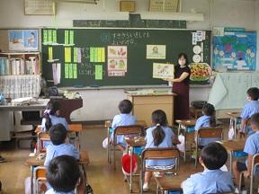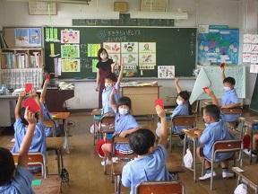 1年生はEAAダイアナ先生と一緒に外国語活動です。英語でしっかりと名前と年齢を自己紹介していました。