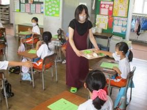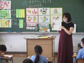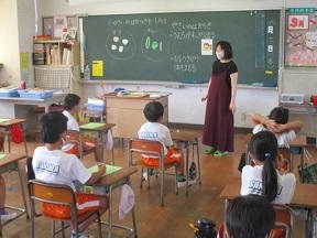 今日も西部給食センターから、栄養教諭 山口亜矢子先生においでいただき食育指導を実施しています。