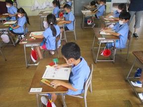 写真は2校時目の様子です。教頭先生の書写の時間でした。