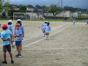 3校時目、校庭では2年生がリレーを行っていました。