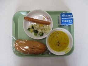 コッペパン チョコレートジャム 豆腐とわかめのスープ 県産チキンステーキ