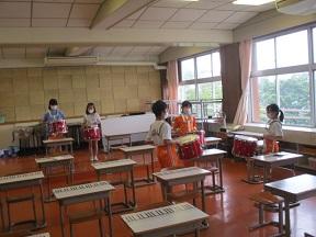 昼休みの時間、鼓笛の練習を校庭で行いました。