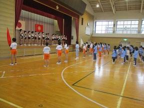 今日は業間運動の日です。校庭はコンデションがよくないため体育館でのみ行いました。