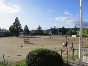 今日の昼休みは、サッカーをする児童でいっぱいです。