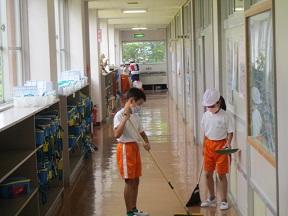 1年から6年までが一緒になって清掃します。