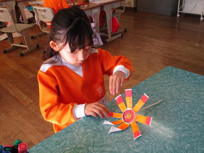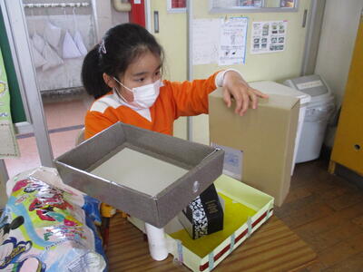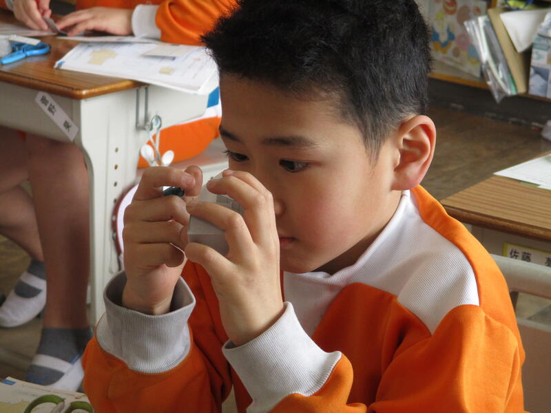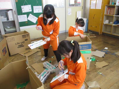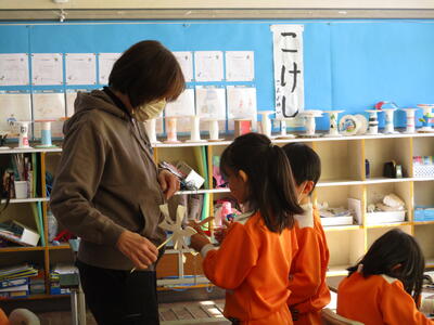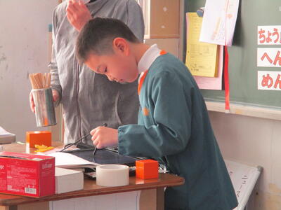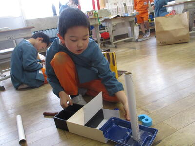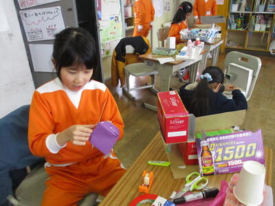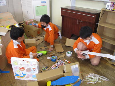2年生が、生活科「うごくうごくおもちゃ」づくりに取り組んでいました。先週の続きで、4つのグループに分かれ、作り方を教えてもらったり、見せてもらったりしていました。お友達からアドバイスをもらったり、一緒に遊んだり、夢中になって楽しく動くおもちゃをつくっていました。