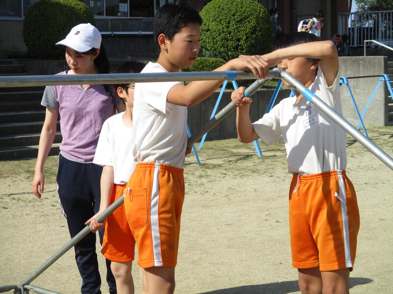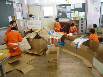 10月24日(木)の図画工作科の時間に、4年生が、新聞紙を使ってタワーをつくりました。3つのグループに分かれ、楽しく工夫しながら制作していました。