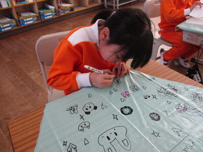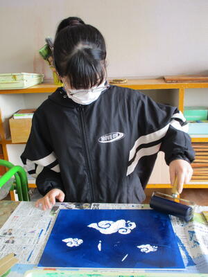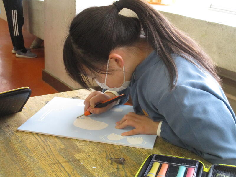 10月18日(金)、1年生がしゃぼん玉を使って絵を描いていました。しゃぼん玉からいろいろな色や形ができて、とても楽しそうに取り組んでいました。