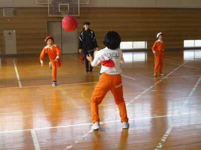 自己紹介のあと、ジェンカやドッジボールをして楽しい時間を過ごしました。
