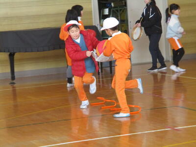 12月20日(金)、4年生が、お楽しみ集会を行いました。初めは、なんでもバスケットです。担任の先生と一緒に楽しく活動していました。