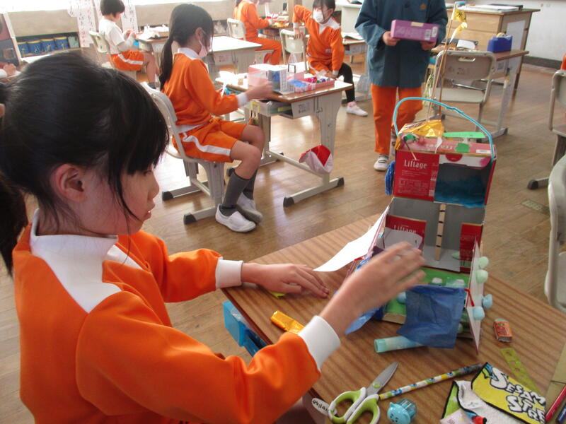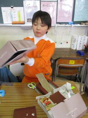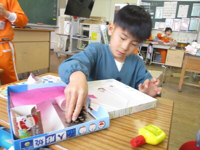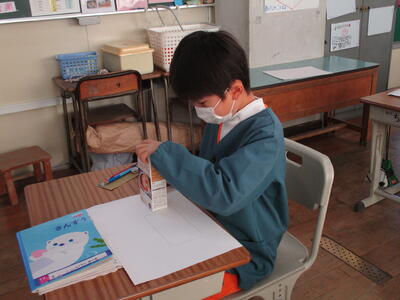 12月9日(月)、2年生が図画工作の時間に、「わくわくおはなしゲーム」に取り組んでいました。お話を考えながら、楽しくみんなで遊ぶゲームをつくります。紙の箱や色の特徴からお話を考えたり。それをすごろくなどのゲームに表したりしました。みんなで遊ぶのが楽しみですね!