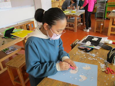 10月11日(金)、6年生が、図画工作化の時間に「わたしの大切な風景」を描いていました。どんな色にしようか考えながら取り組んでいました。みんなでBGMを聴きながら、楽しく制作に取り組んでいました。どんな風景画になるか楽しみです。