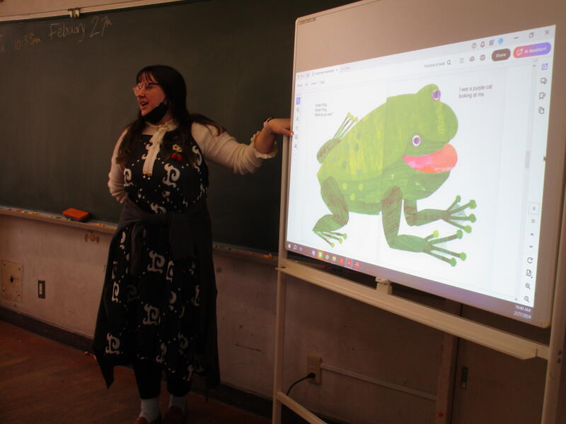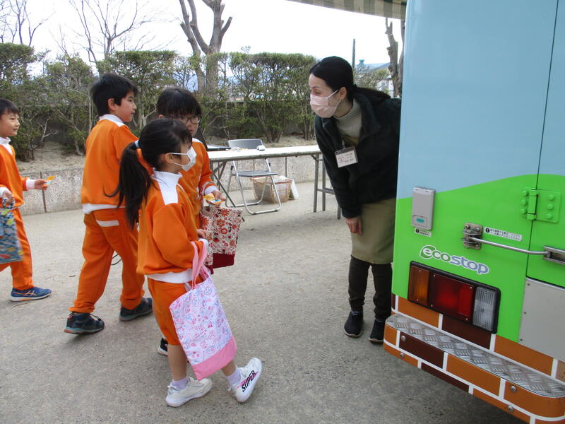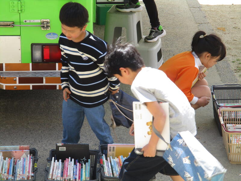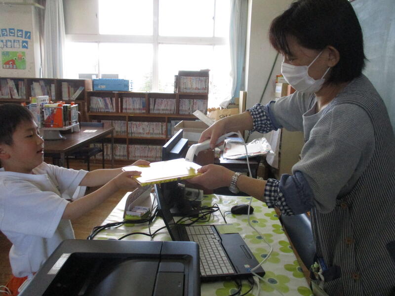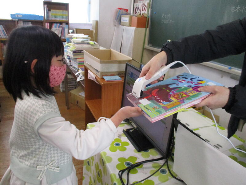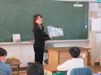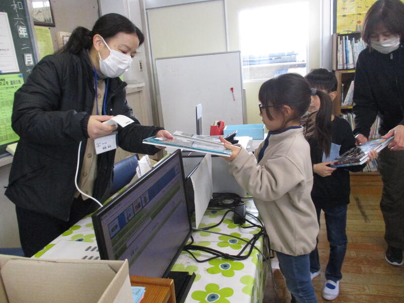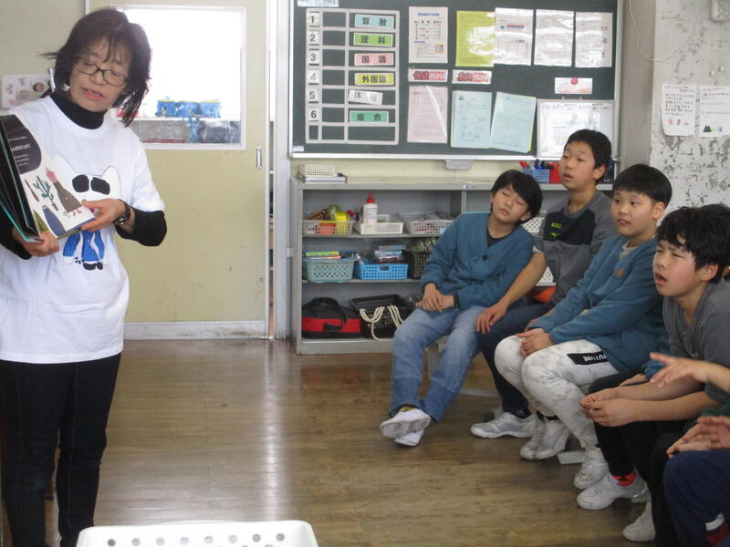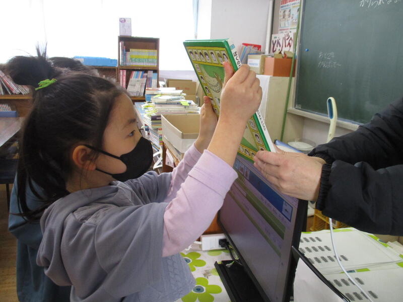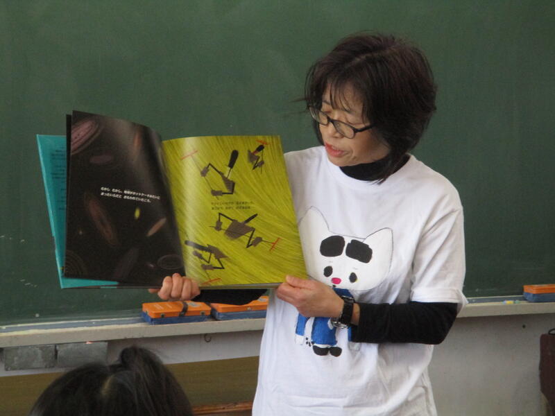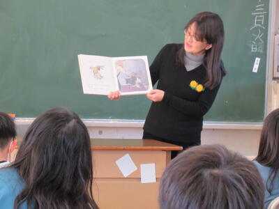 たんぽぽの会の古関さんと学校図書館司書の佐々木さんが、絵本の読み聞かせをしてくれました。