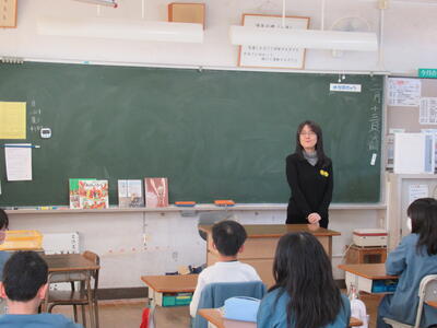 12月20日、たんぽぽの会の方から、6年生に、今年最後の読み聞かせがありました。谷川俊太郎さんの詩集や雪女、クリスマスのまえのばんなど、たくさんの本を読んでいただきました。挿絵がきれいな本もあり、子どもたちは、目と耳で楽しんで聞いていました。今年もたくさん読み聞かせをしていただき、ありがとうございました。