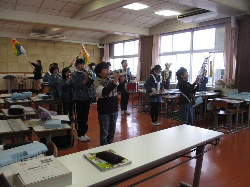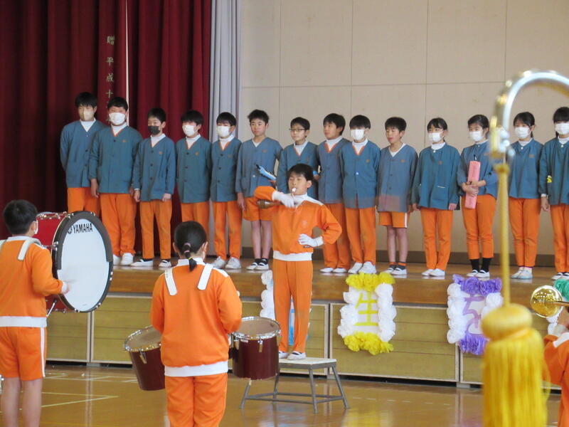 12月20日(金)、来年度の鼓笛に向けて、2・3年生が練習を行いました。今日は、2・3年生が初めて合わせて演奏をしました。6年生が演奏を聴きながら、良かったところや改善点について指導をしていました。本校の伝統が受け継がれていく様子を見て、とても頼もしく思いました。