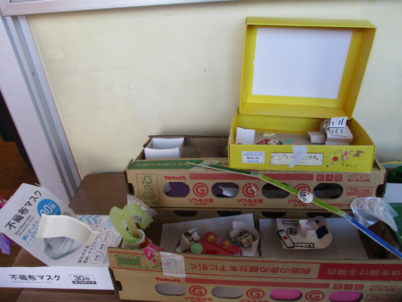 11月26日(火)、1年生が、自分たちでつくった秋のおもちゃで遊びました。どんぐりのマラカスやまつぼっくりのけん玉など、たくさんのおもちゃがあり、子ども達は、秋を満喫しながら楽しく遊んでいました。