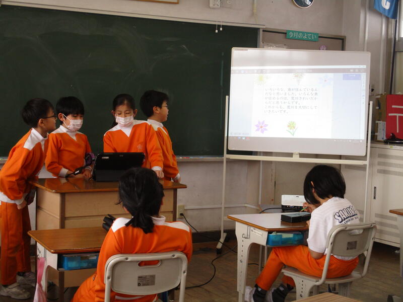 2年生が、生活科の時間に行った町探検の発表を行いました。3つのグループに分かれ、タブレットを使ってまとめたものを発表しました。全員が発表を行い、動画を使って発表するグループも見られ、素晴らしい発表会となりました。