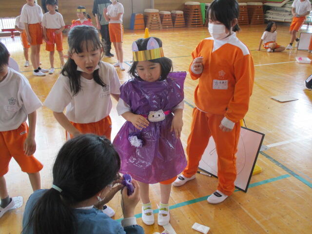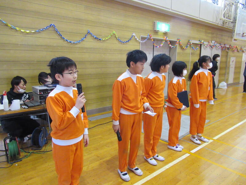 5年生が、体育館でお楽しみ集会を行いました。伝言ゲームの言葉を絵に変えて行ったり、けい泥をしたり、思いっきり体を動かして楽しみました。