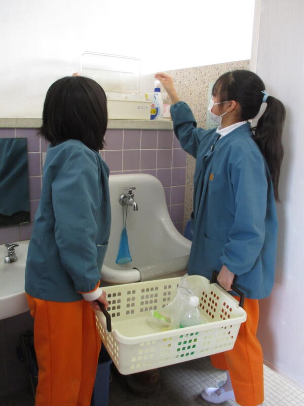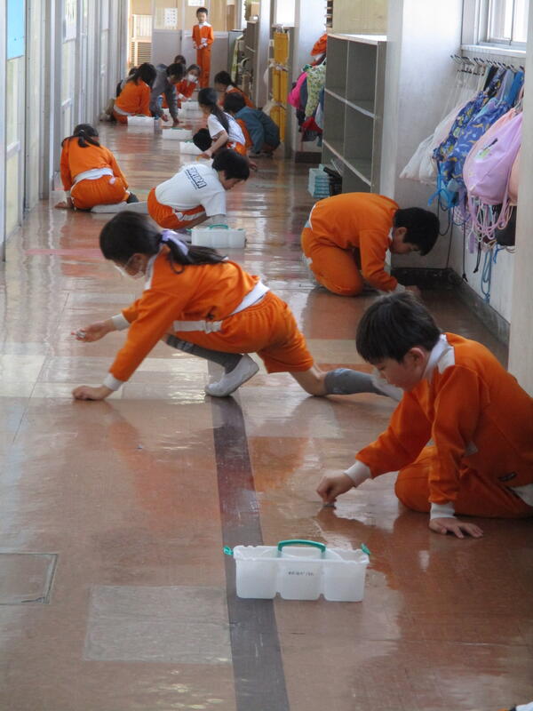 11月12日(火)、上名倉東部千寿会様から、雑巾百五十枚を寄贈していただきました。6年生の保健委員長が、代表していただきました。環境美化に向けて使わせていただきます。ありがとうございました。