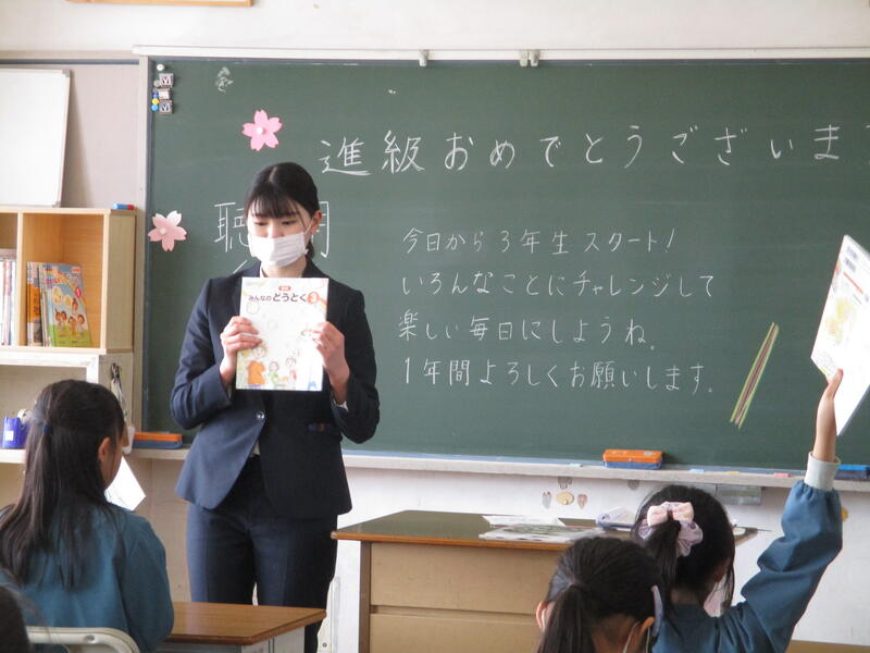 12月17日(火)の外国語活動の時間に、3年生が、EAAの先生から英語の本の読み聞かせをしていただきました。クリスマスの本で、プレゼントが隠されている絵本でした。子どもたちは、どんなプレゼントが入っているか予想しながら聞いていました。
