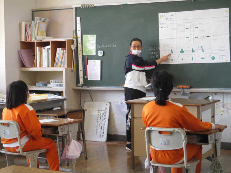 10月24日(木)の算数の時間に、3年生が、円の学習をしました。今日の学習課題は、玉入れをするのにどんな並び方がよいかです。いろいろな並び方について発表があり、どれが一番よいか話し合っていました。