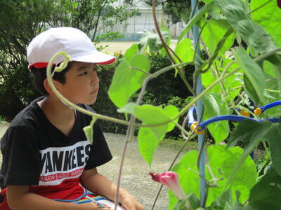 5年生が、ここ何年も行っていなかった、学校の田んぼを使っての田植えをしました。地域の方が田んぼの学校の先生として、苗の植え方や成長の様子について、丁寧に説明をしてくださいました。