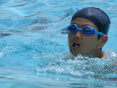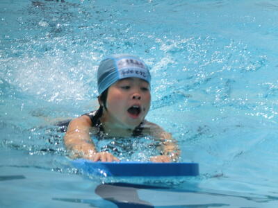 先週金曜日のプール開きを受け、早速初泳ぎの授業がありました。3校時に1・2年生が、今年度の初泳ぎを行いました。初めは、「冷たーい」と大騒ぎの子ども達でしたが、水に慣れてくると、笑顔で楽しく水泳の学習が終わったようでした。今日は、気温が28度、水温が25度と気持ちよく学習することができました。
