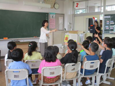 1年生は、歓声をあげたり、主人公になり代わったり、お話の世界に引き込まれていました。