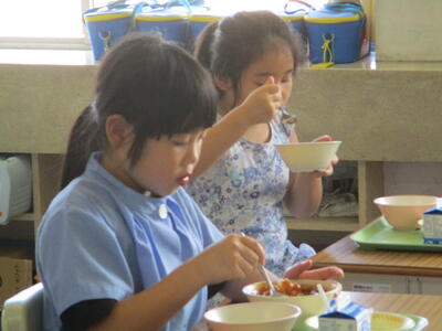 みんなで食べる給食は、おいしいですね!