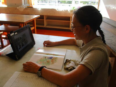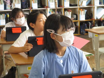 1年生が、タブレットを使って学習をしていました。漢字の読み書きや計算など、自分のペースに合わせて学習をしていました。家庭学習でもたくさん活用してください。