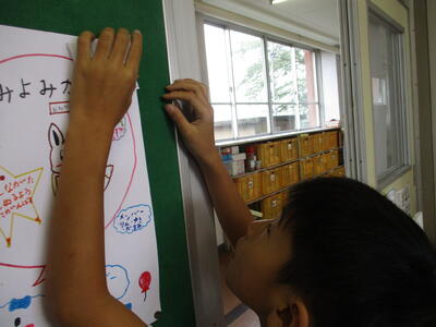3年生が、先生方にインタビューした内容を、イラストを入れてきれいにまとめました。子どもたちは、楽しそうに先生方の答えを見ていました。