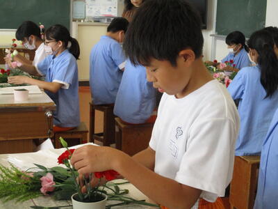 5年生が、家庭科の時間に、調理実習を行いました。今日は、「ゆでておいしい料理をつくろう」です。青菜のゆで加減もちょうどよく、きれいな色に仕上がっていました。また、じゃが芋も、上手にゆであがっていました。