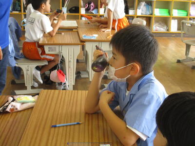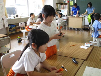 3年生が、音楽の授業でリコーダーの学習をしました。初めてのリーコーダーの学習に意欲満々です。初めに、上の部分だけで、音を出す練習をしました。音が出せるようになると、次は鳥や動物の声をまねてみました。
