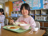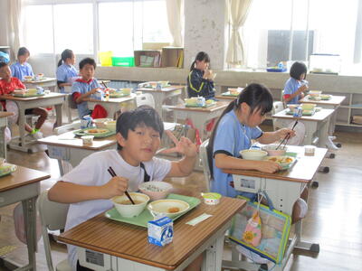 こづゆは、会津地方の冠婚葬祭で食べられる、お膳の中心的な料理です。干し貝柱でだしをとるのが特徴です。子ども達は、会津地方ならではの料理を味わって食べていました。おいしい給食ごちそうさまでした。