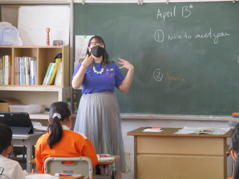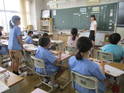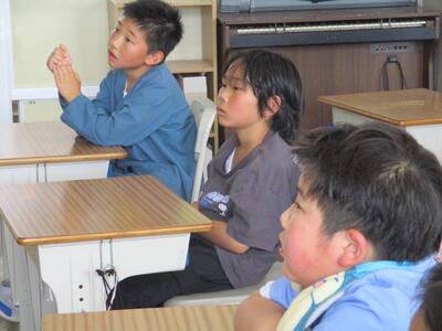 音楽に合わせて発音したり、質問に答えたり、大きな声でがんばって学習していました。