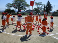 いつもは、上級生にお世話をしてもらっていますが、今日は、お兄さん、お姉さんになって、幼稚園のみなさんに優しく教えていました。園児のみなさん・1年生・2年生みんな仲良く楽しく遊んでいました。