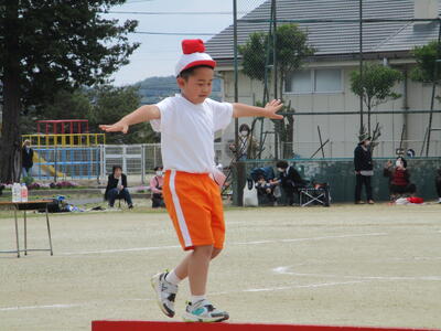 とび箱に背中をつけずに跳ねるように着地します。思わずできた時には、ガッツポーズでした。