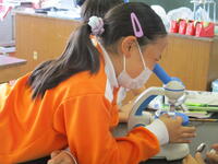 5年生が、理科の時間に、ふりこの実験をしていました。時間を計りながら、ふりこのふれる数を数えていました。