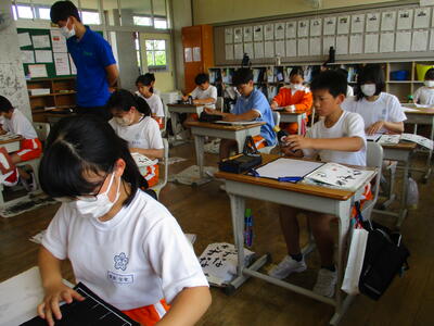 本日、3年生~6年生が、「書初め教室」を行いました。講師として、地域の方々4名が来校されました。