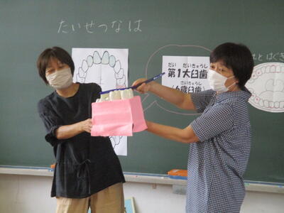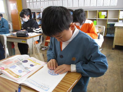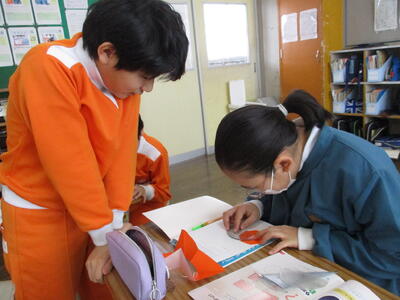 3年生が、そろばんの学習をしていました。そろばんを使う機会はほとんどないため難しい様子でした。繰り上がりや繰り下がりの仕方を、友達と確認しながらがんばっていました。