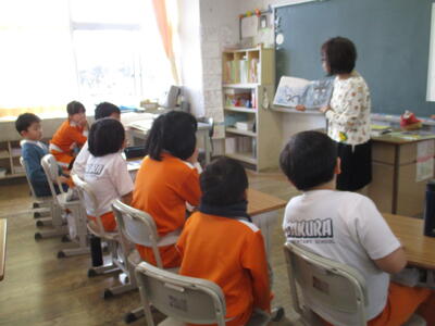 1月23日(火)のさくらっ子タイムに、3年生が、たんぽぽの会の方から読み聞かせをしていただきました。