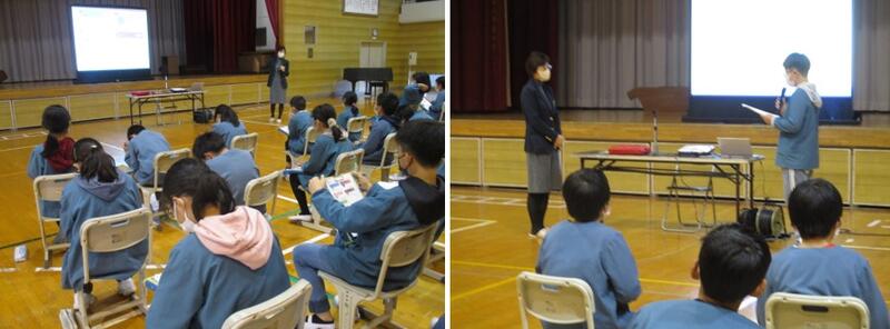 本日のさくらっ子タイムの時間に、5年生が、たんぽぽの会の方から読み聞かせをしていただきました。今日は、数にかかわる絵本を2冊紹介してくださいました。子どもたちは、動物に関する数や数の仕組みを聞き驚いていました。