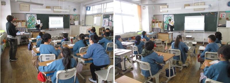 3年生が、外国語活動の時間に、EAAの先生とアルファベットの発音やクリスマスカード作りを行っていました。